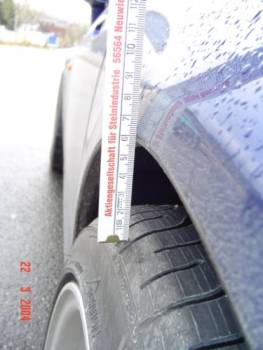 @thomas, kannste mal ein Bild von oben an der Kotfügelkante runter knipsen wie der Abschluß Rad zum Kotflügel sich verhält. Ich kann nicht glauben dass da nix streifen soll. Ausser meine Räder stehen einiges weiter raus