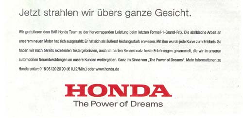 Trotz dieser besserwisserischen Anmerkungen habe ich mich übrigens riesig über die gute Platzierung von Honda gefreut. -
