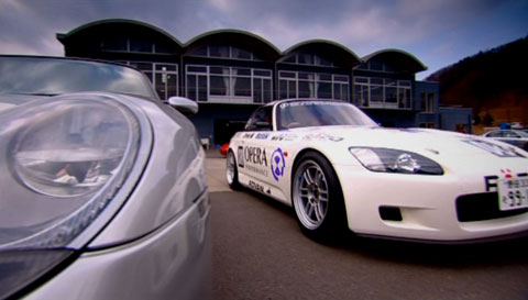 Fast vergessen: es liegt eine DVD bei mit verschiedenen Filmen, so eine Art Making of. Man sieht wie die Entwickler in Japan die verschiedensten Wagen über die Teststrecken prügeln. Es gibt eine Menge S 2000 zu sehen, unter anderem schöne weiße und verschiedene Rennversionen mit obszönen Flügeln. Einer ist komplett in einer merkwürdigen Edelstahllackierung/-legierung, sieht fast wie Vollchrom aus.