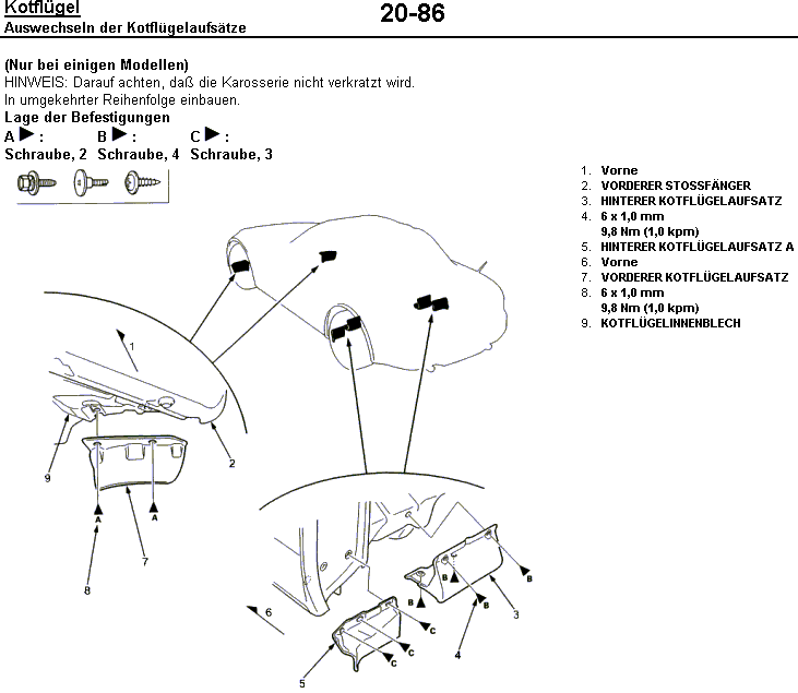 Als ich heute meinem S-chatz (Bj. 07/2001) eine Aussen-komplett-Kur verabreichte, fiel mir auf das mein S keine wie im Werkstatthandbuch beschriebenen "Kotflügelaufsätz" weder vorne noch hinten hat!!