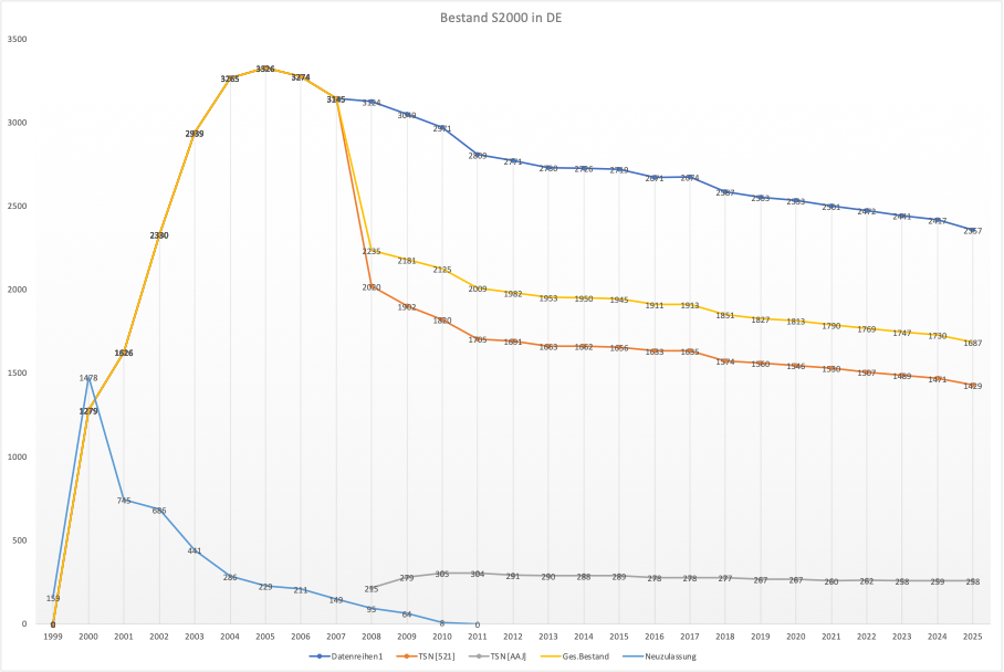 Der beim KBA gemeldete Bestand an S2000 in DE: