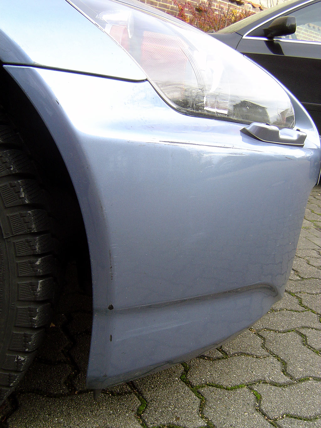 Ich habe vorhin, als ich Winterreifen drauf machte, einen prächtigen, tiefen, ca. 35cm langen Kratzer von der Scheinwerferreinigungsdüse bis zum Radhaus gefunden. Und noch paar abgescheuerte Stellen ohne Lack an der Radhauskante im unteren Bereich, sowie auch eine freiliegende Grundierung am rechten Kotflügel. Da ist schön zackig einer dran lang geschrammt und zwar nicht zaghaft. Und der hielt es mal wieder nicht für nötig, wenigstens einen Zettel zu hinterlassen.