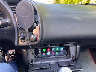 Kabel steckt im 12V USB adapter in der Mittelkonsole zwischen den Sitzen