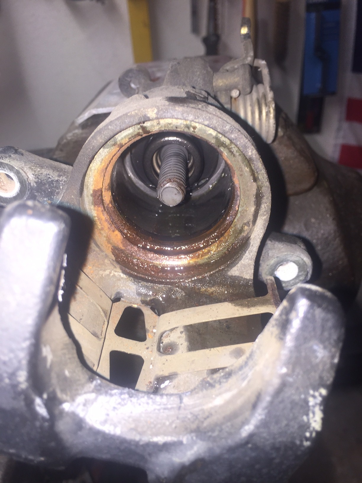 Habe sie heute mal zerlegt da ich Dichtsätze da hatte nur leider ist der Kolben auch Oxidiert und mit Schmiergelleinen wollte ich ihn nicht wirklich bearbeiten und habe 2 neue Kolben bestellt .Rechte Seite wird dann auch noch zeitnah erledigt .PS Micha was hat Bernd den Im Petto zwecks entlüften