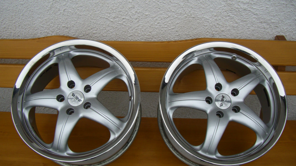 Habe noch einen Satz Antera 309 VA 8x18 ET50, HA 10x18 ET58 für den S (LK 114,3) rumliegen. Zustand ist wie auf den Bildern sichtbar recht gut, eine der hinteren Felgen hat kleinere Kratzer am Felgenstern.