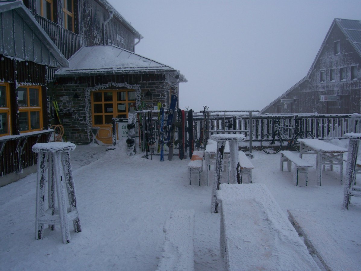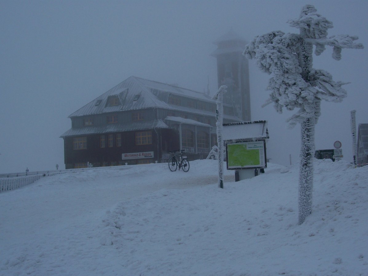 Der Inhalt kann nicht angezeigt werden, da er nicht mehr verfügbar ist. Der Inhalt kann nicht angezeigt werden, da er nicht mehr verfügbar ist. Am nächsten Tag dann der Härtetest >> auf zum Fichtelberg (1215m). Das Wetter ging mal so, -2°C und bedeckt. Ich hatte gehofft, das der Gipfel aus der Nebelsuppe rausschaut.