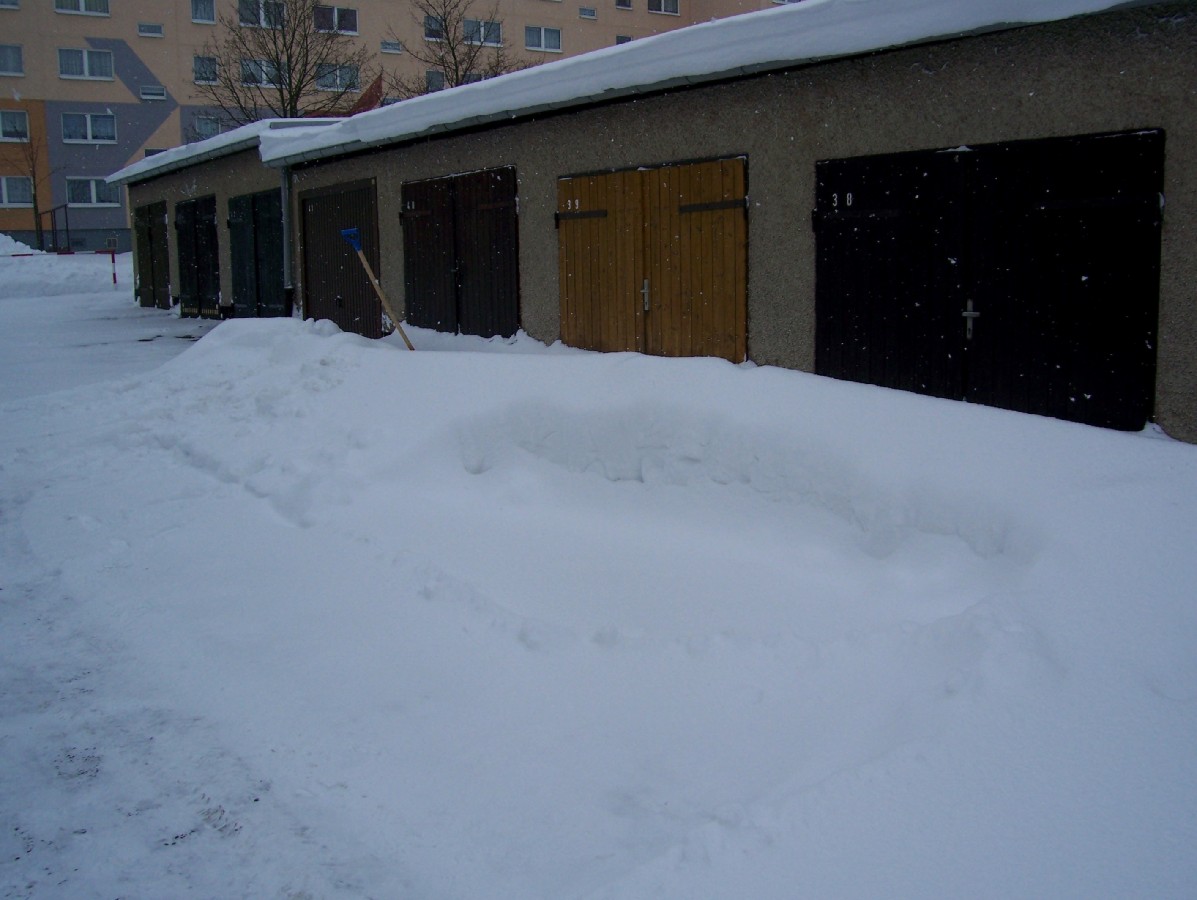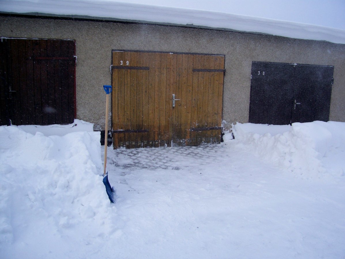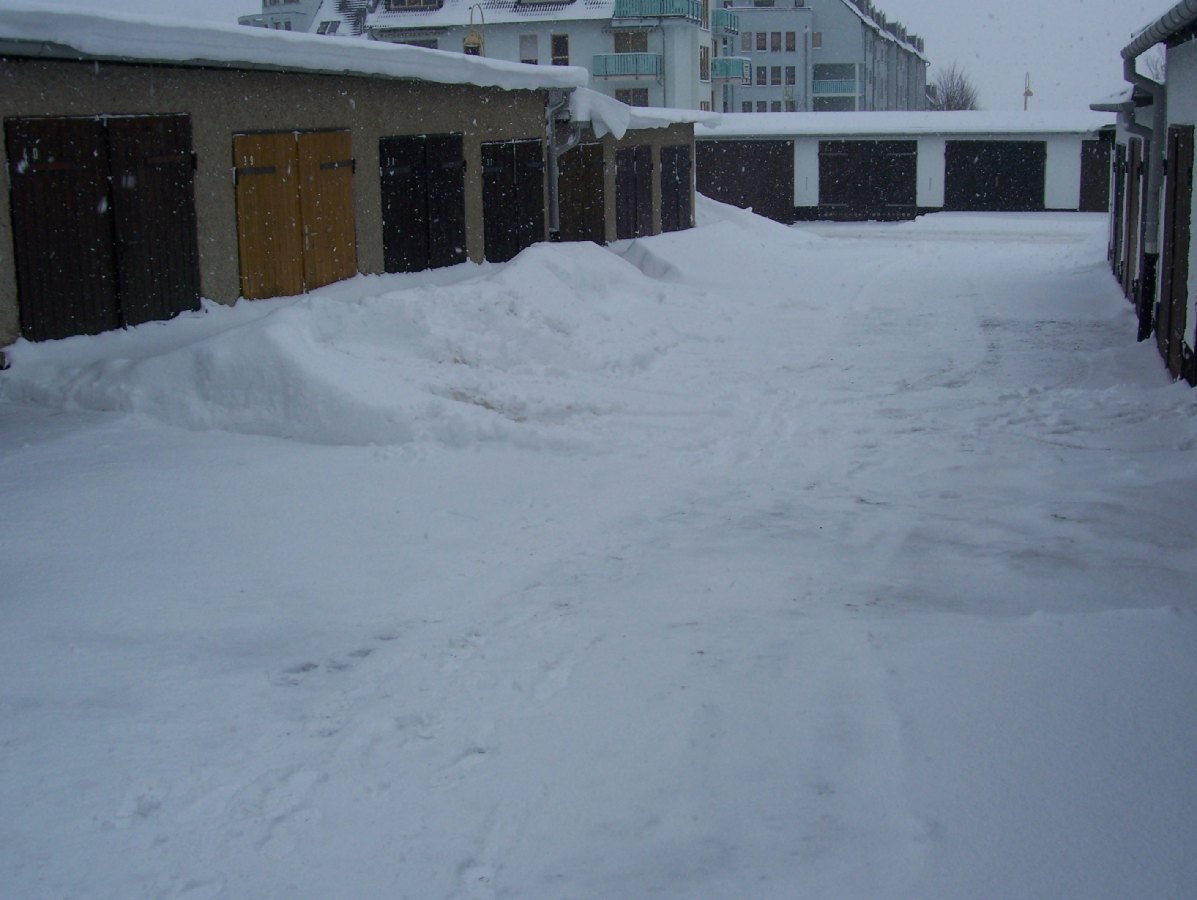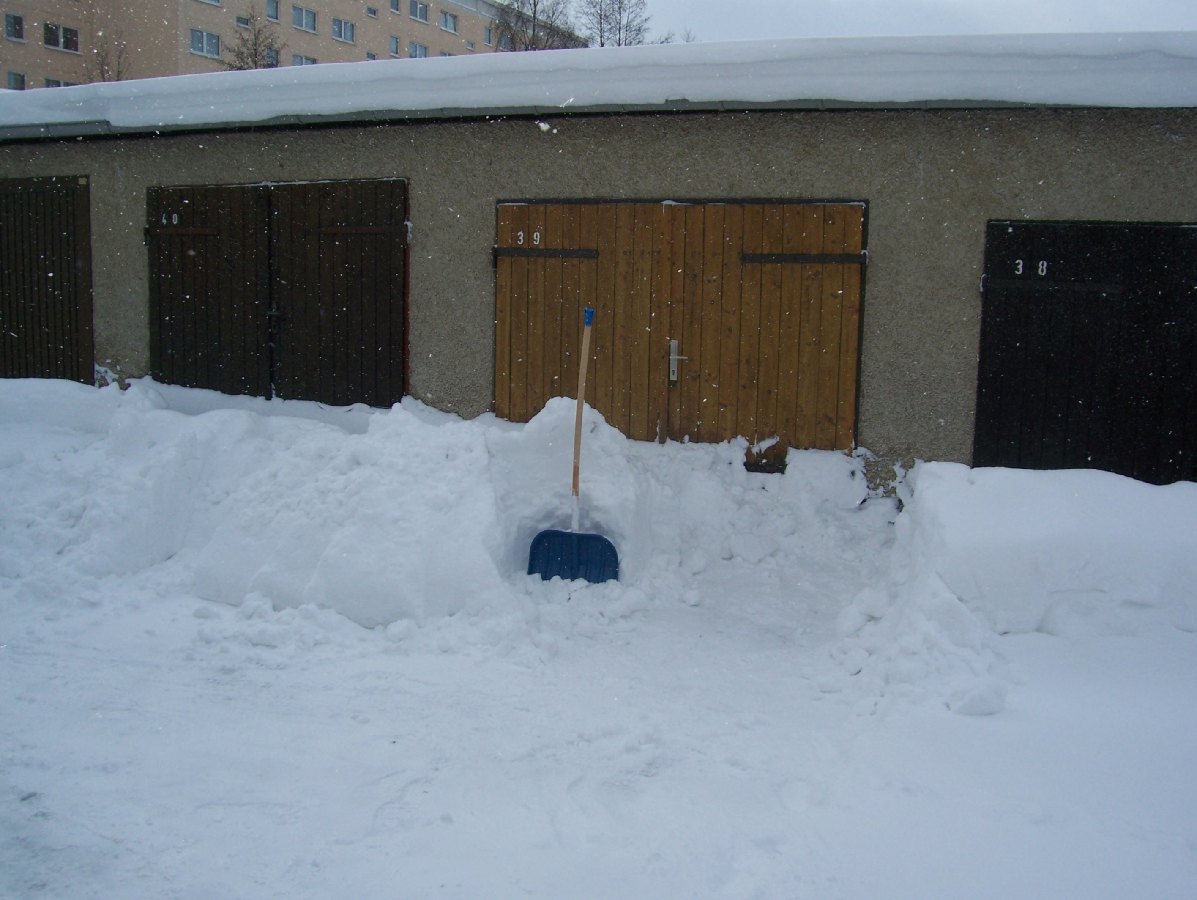 So Freunde, da will ich mal zum eigentlichen Thema zurückkommen > Nichtwinterfahrer ! Ich will Euch mal in Bildern darlegen, warum ich zwangsläufig dazu gehöre. Bei uns liegt schon seit Wochen Schnee ohne Ende und es ist arschkalt dazu. Mein S steht in einer Garage und obwohl ich nicht fahre, muß ich ab und zu Schnee schaufeln.Weil > die Garagen stehen in Reihen und mit den Toren zueinander gegenüber. Wenn es schneit, muß ich schippen, damit mein gegenüber raus- und reinkommt. Widerspruch zwecklos, ist alles im Statut festgelegt ( Deutschland, ick liebe Dir !!) und muß eingehalten werden. Noch dazu sind viele streitsüchtige Rentner anwesend, da hab ich keine Lust zu sinnlosen Disskusionen. Also Schaufel in die Hand und los............