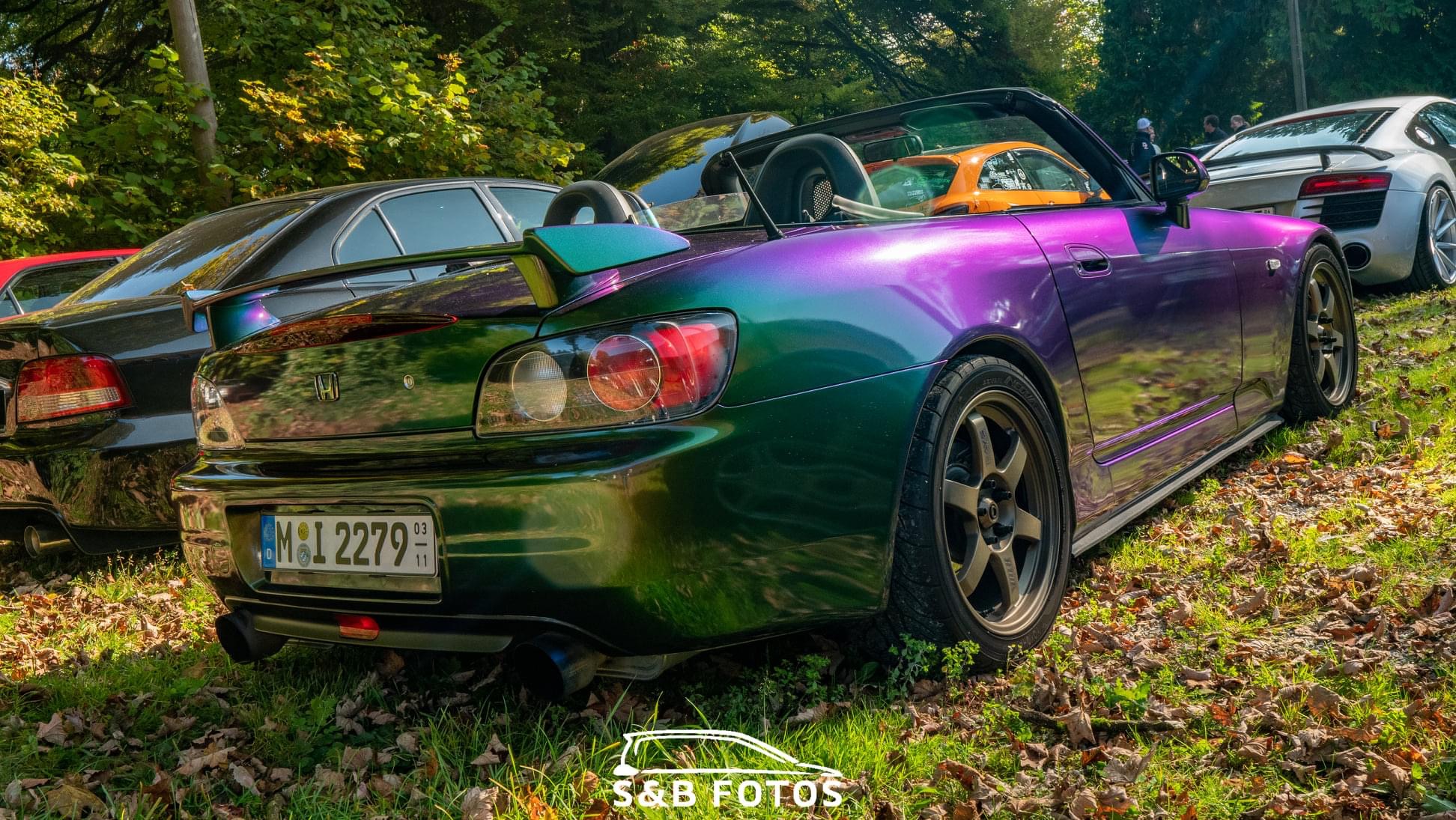 Ein richtig schöner, offener S beim Freilauf, FlipFlop Lackierung/Folierung Lila / Grün.