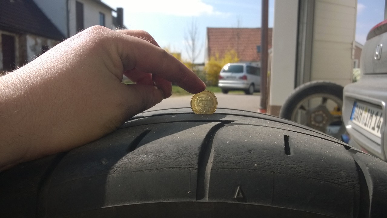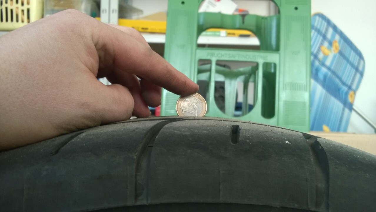 Gerade mal geschaut, die Reifen haben rundrum noch 5 mm Profil.