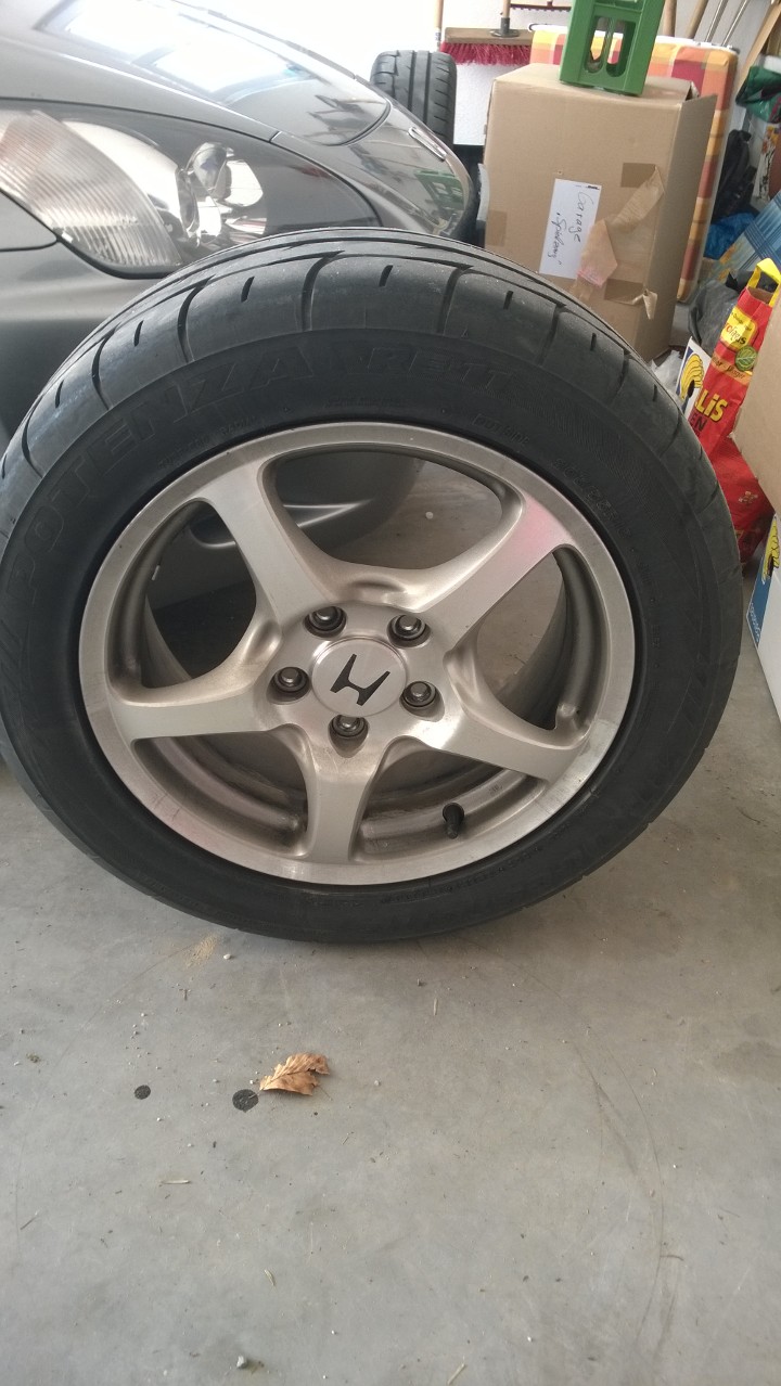 Als Reifen sind Bridgestone Potenza RE11 montiert. Sind wohl Semislick, Drift, Performance Reifen.