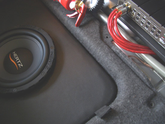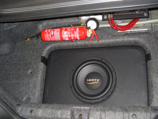Wichtig war mir auch das man die Subwoofer Box easy und schnell ausbauen kann wegen Transportplatz und Renneinsatz. Das haben wir durch eine Schnellkupplung zwischen Box und Endstufe gelöst sowie die Hebelaschen an der Box selber. Das funktioniert echt super.
