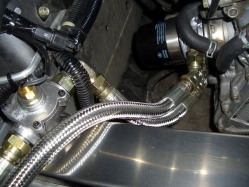 Also in der Mocal Adapterplatte von Sandtler ist kein Platz für ein zusätzliches Gewinde oder ein Buchse für den Temp. Sensor (Defi etc.) deshalb gehe ich jetzt einen anderen Weg und mache es wie Dennis und setze eine Sensoraufnahme in die Rücklaufleitung vom Ölkühler ein. It´s the only way!