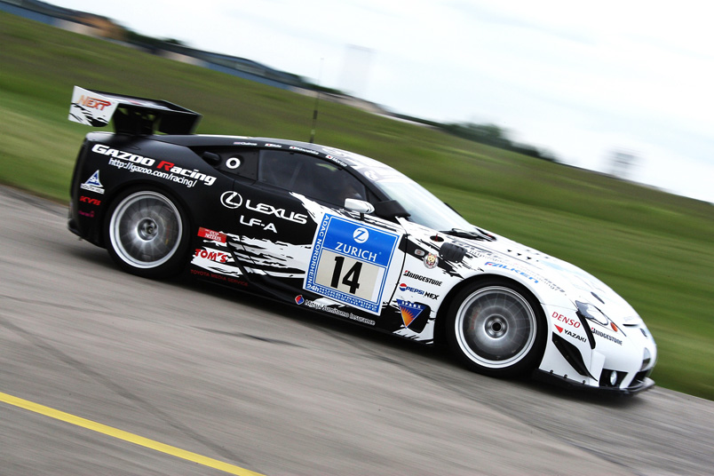 Based on a prototype of the LF-A being developed with an eye toward commercial release, the race vehicle, entering the Nürburg event for the second year in a row, has been equipped with race-grade safety equipment, such as a roll cage and special fuel tank, and fitted with a spoiler and other aerodynamic features. Although engine, powertrain and frame specifications differ little from those of the base vehicle, the race vehicle has been retuned to better meet the demands of the course.