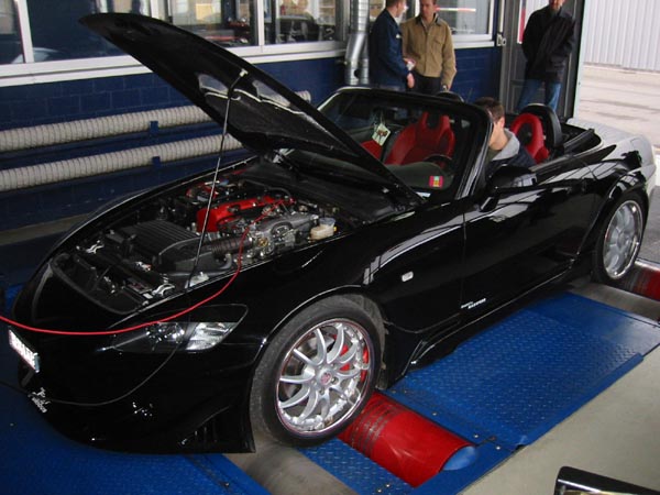 die messungen waren recht schnell durch, es wurde im 4. gang gemessen. die genauen resultate hab ich nicht hier. soweit ich weiss war die aussentemp 5-6°c und der luftdruck 966mbar. der prüfstand rechent die werte auf 20°c und 1 bar rauf oder runter... was nicht berücksichtigt wird ist die luftfeuchtigkeit. alle messungen waren nach patrik keller recht niedrig was vermutlich auf einen schlechten messtag zurückzuführen ist (nach patrik)...