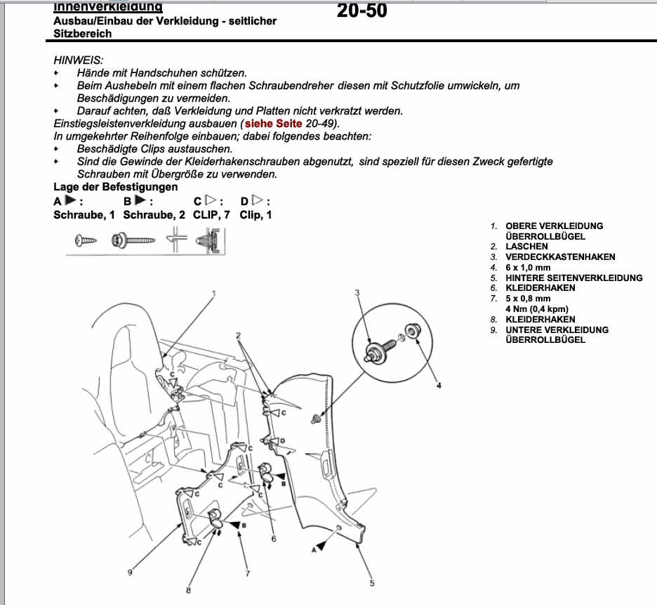 Da musst du wohl irgendwie von Richtung Verdeckkasten dran, und dann scheinen das zwei Teile zu sein, dummerweise nicht vorne und hinten, sondern oben und unten. Schau dir mal die Ex-Zeichung dazu an.