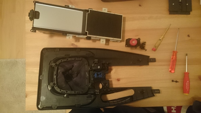 Gibt es überhaupt eine Anleitung zum Ausbau der Mittelkonsole? Die Suche ergab nichts konkretes. Leichter wäre es Natürlich, wenn ich das Alu-Teil ohne die Mittelkonsole auszubauen ersetzen könnte. Es ist auch kein Aluminium habe ich soeben gemerkt, sondern einfach lackierter Kunststoff der an einer Schiene montiert ist. Dieses kann man auch mit den eingesetzten 5 Schrauben von der Schiene lösen.