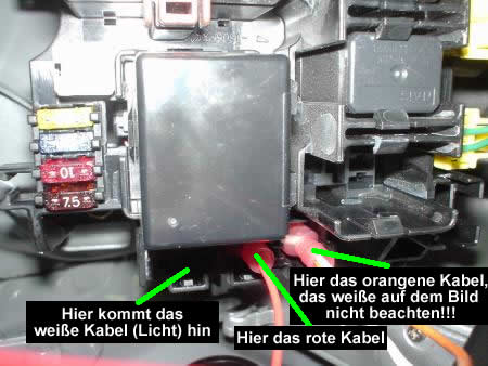 An der Sicherungsbox unter dem Lenkrad befinden sich bereits alle nötigen Anschlüssen, und zwar direkt an der Box!!!