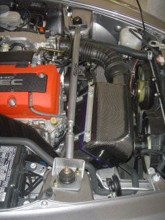 Hier mal noch einige Bilder von der OMP-Domstrebe, könnte mir höchstens vorstellen, dass es Probleme auf der rechten Fahrzeugseite geben könnte, da dort die Domstrebe tief runter kommt. Siehst Du auf einem Bild, wobei wenn ich mich recht entsinne, dann wird das Comptech CAI im vorderen Teil montiert und nicht direkt unter der Domstrebe.