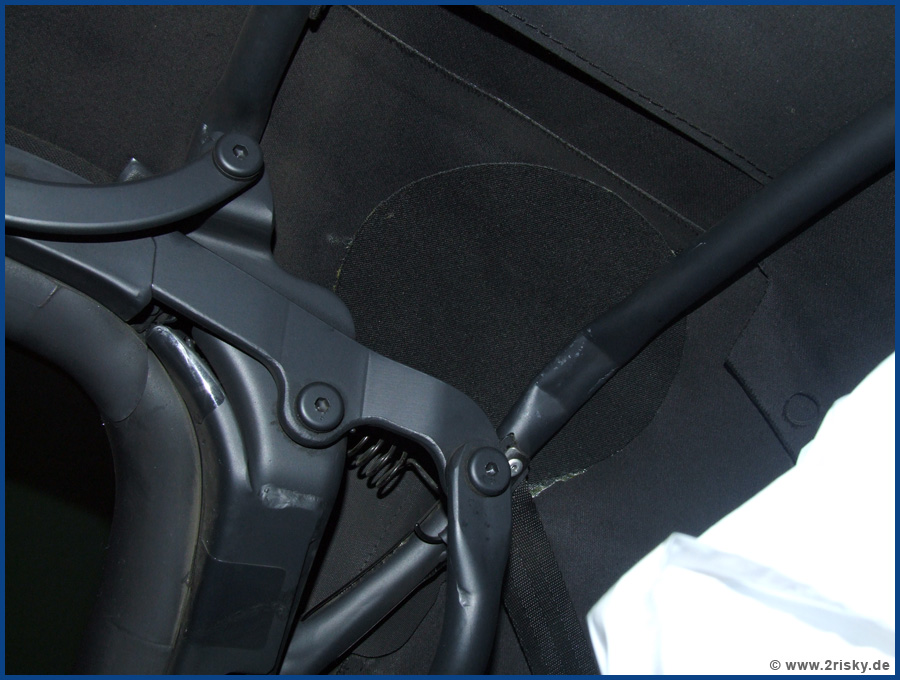 Zuerst hatte ich das Problem mit dem (noch) kleinen Loch im Verdeck. Dies konnte ich im Herbst 2008 mit einem Reparatursatz elegant und bisher dauerhaft beseitigen. Ich denke mal da wird die nächsten Jahre nichts mehr passieren:
