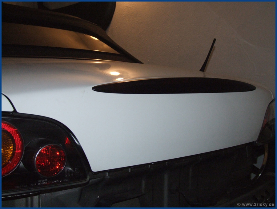 Dann war da noch meine Stoßstange. Die drecksweißen Lufteinlässe störten mich seit jeher. Deshalb hatte ich diese geschliffen, grundiert, geprimert und dann Schwarzmatt lackiert. gefällt mir nun schon vieeeeeel besser!