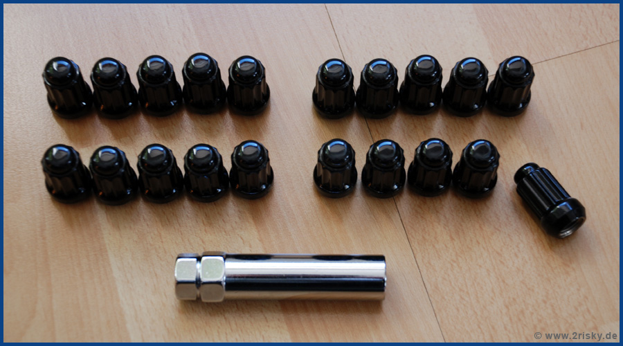 Außerdem hab ich nun auch endlich die richtigen LugNuts für meine Felgen. Kommen aus Amiland und der Versand funktionierte absolut reibungslos.