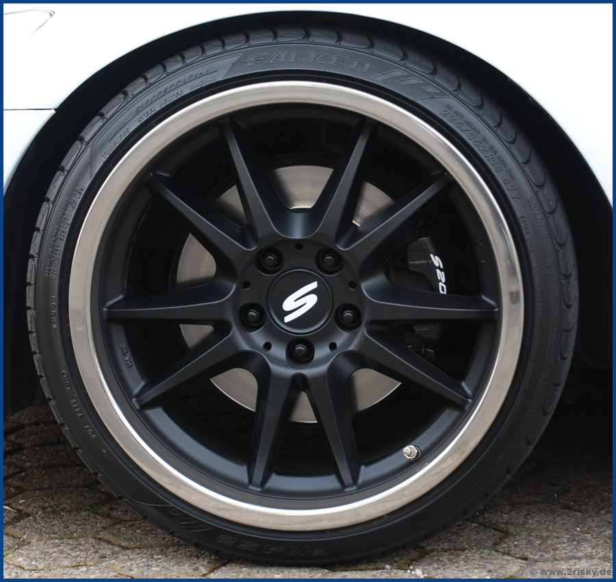 Und da ich nen guten Bekannten habe der mir das so wunderschön in Folie macht, durfte er mir dann auch noch ein "S" für meine neuen Nabendeckel machen. Die mussten sein, weil ich nicht die originalen OZ-Deckel lackieren wollte. Denn meine Felgen sind nun Schwarz-Seidenmatt beschichtet und auch wenn es mittlerweile schon alltäglich zu sein scheint, mir gefällts sowas von brutal gut!