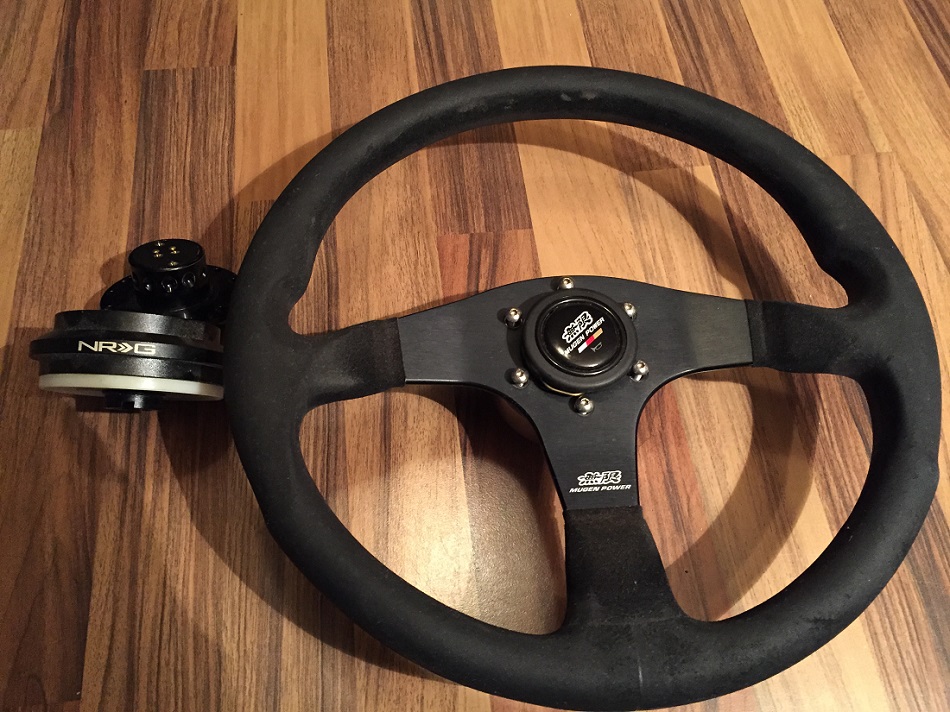 Wunderschoenes Mugen Race 3 Lenkrad mit Quick release von Spec-D und NRG Hub, gedacht fur s2000, war auch vorher in meinem s2000 eingebaut, normale Gebrauchsspuren --> Preis 250- euro