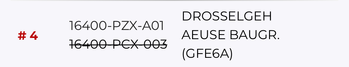 Dennoch interessant.2001 Preface ist: 16400-PCX-003 wurde aber ersetzt mit PZX-A01 am Ende (auch Europa).
