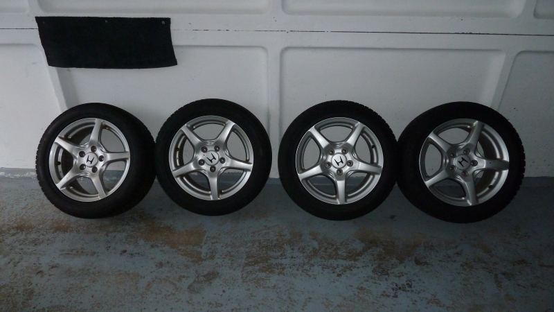 Montiert sind Dunlop SP Winter Sport 3M, 225/50R16 hinten und 205/55R16 vorn, aber diese sind nur noch als Transportschutz zu sehen, da sie aus 2002.