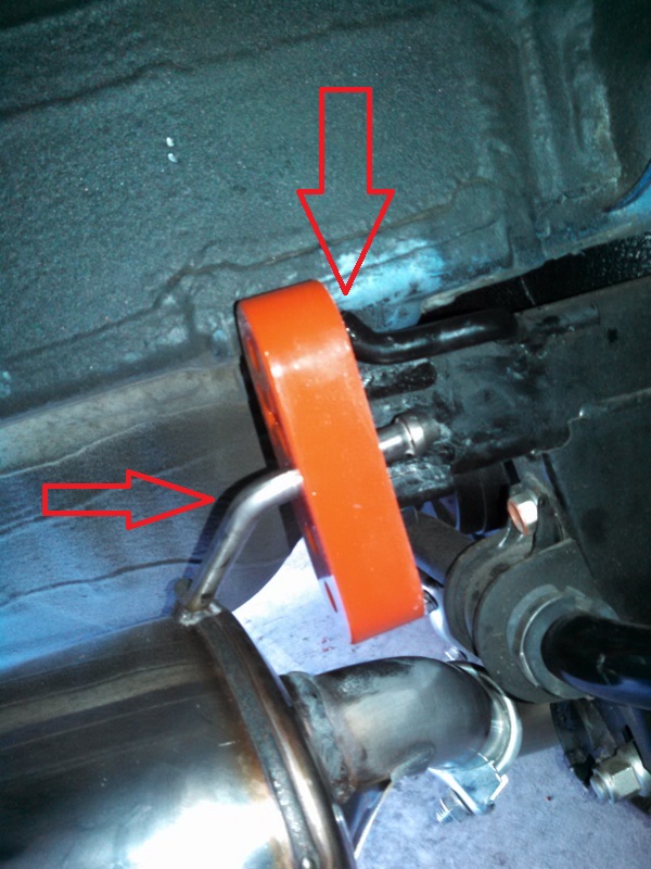 Der MSD hat an der (in Fahrtrichtung gesehen) rechten Seite nur einen Abstand zur Karosserie von maximal 5 mm. Kann also sein, dass bei nachlassenden Aufhängungsgummis das Dingen an die Karosserie schlägt.