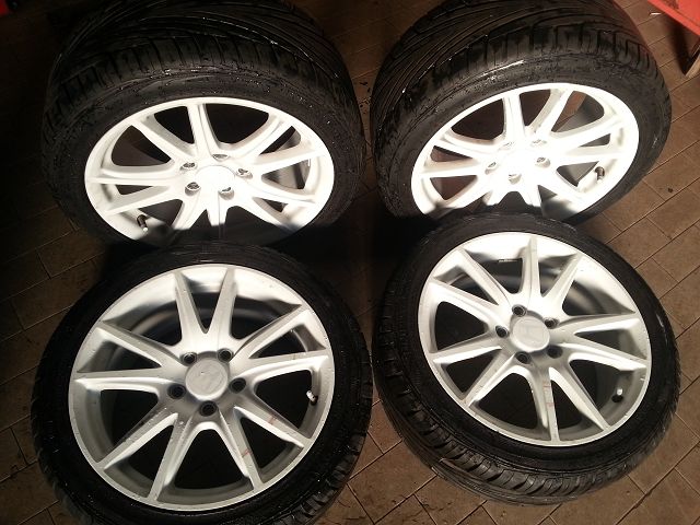 Die Felgen sind silber und mit Plasti Dip white beschichtet. Ein paar kleine Bordsteinschäden musste ich leider vom Vorbesitzer erben. Dafür keine Höhenschläge oder ähnliches.Für Fragen stehe ich gern zur Verfügung.