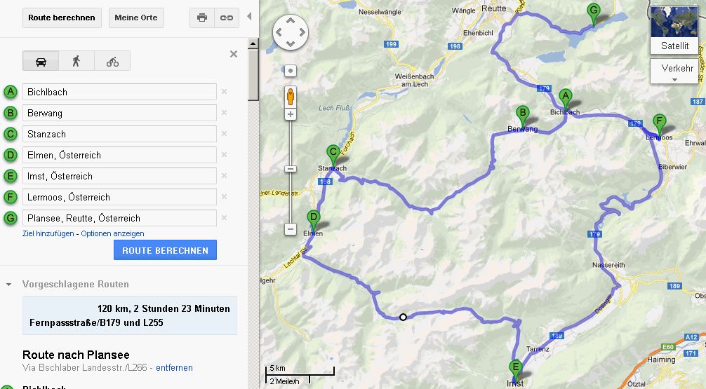 Ich meide mit meinem S meist die Strecke E -> F -> A (Staugefahr) und fahre übers Hahntennjoch und durchs Namlostal (macht nämlich süchtig)