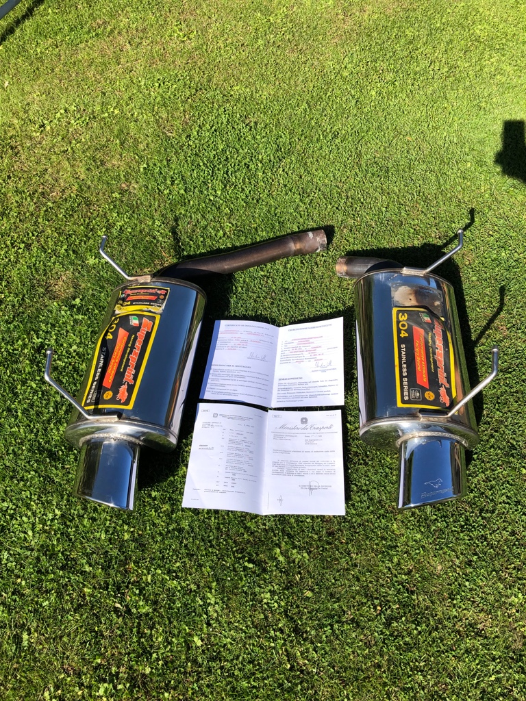 Supersprint Endtöpfe mit original ABE. Sie haben ein schön dumpfen kernigen Klang. NP war glaub ich ca 1000,-. Zu verkaufen für 700,- inclusive Versand. Falls gewünscht, habe ich auch noch einen durchgängiges Edelstahl Abgasrohr ohne MSD welches aber nie bei mir verbaut war. Aufpreis dafür wären 50,-