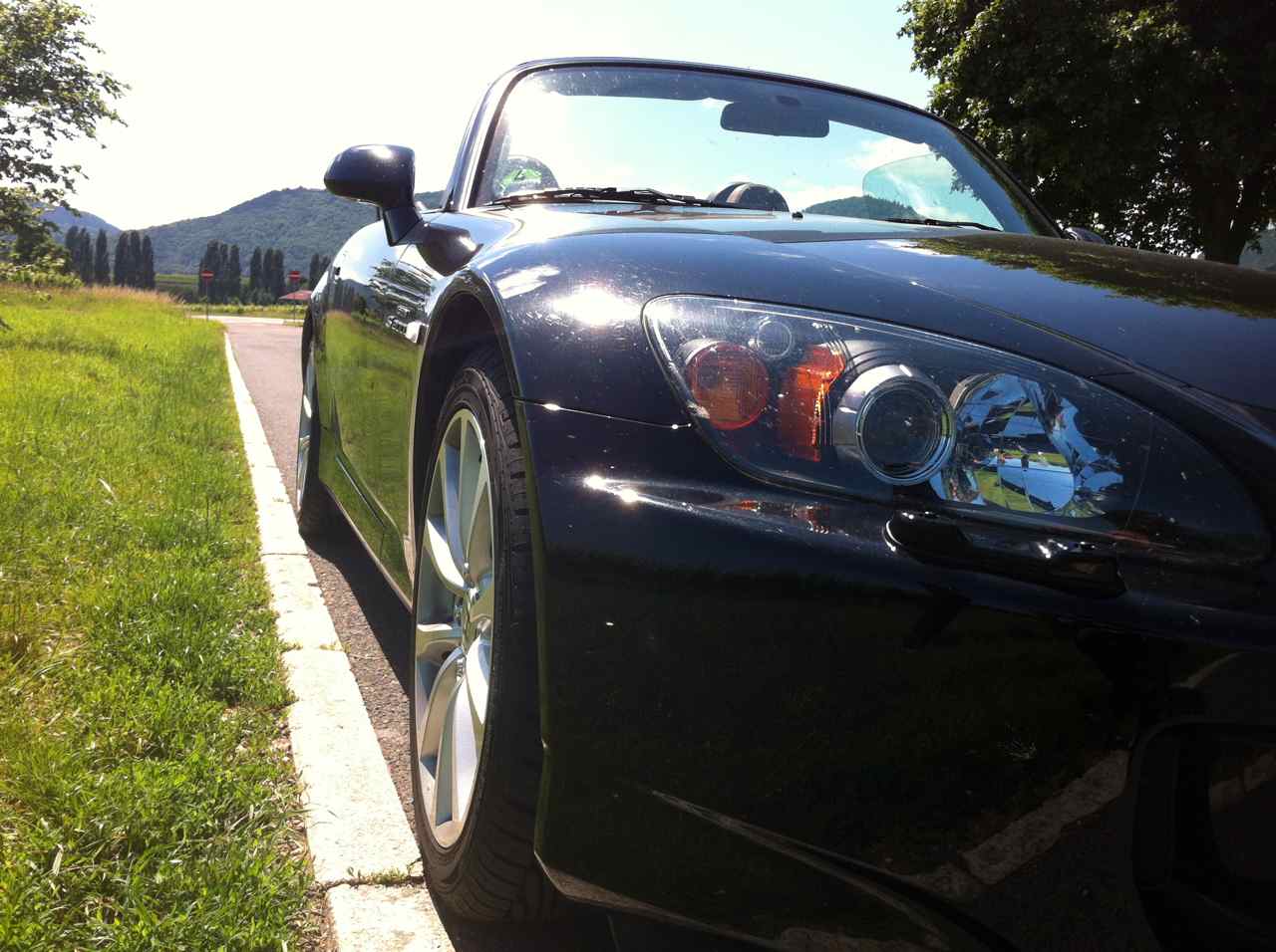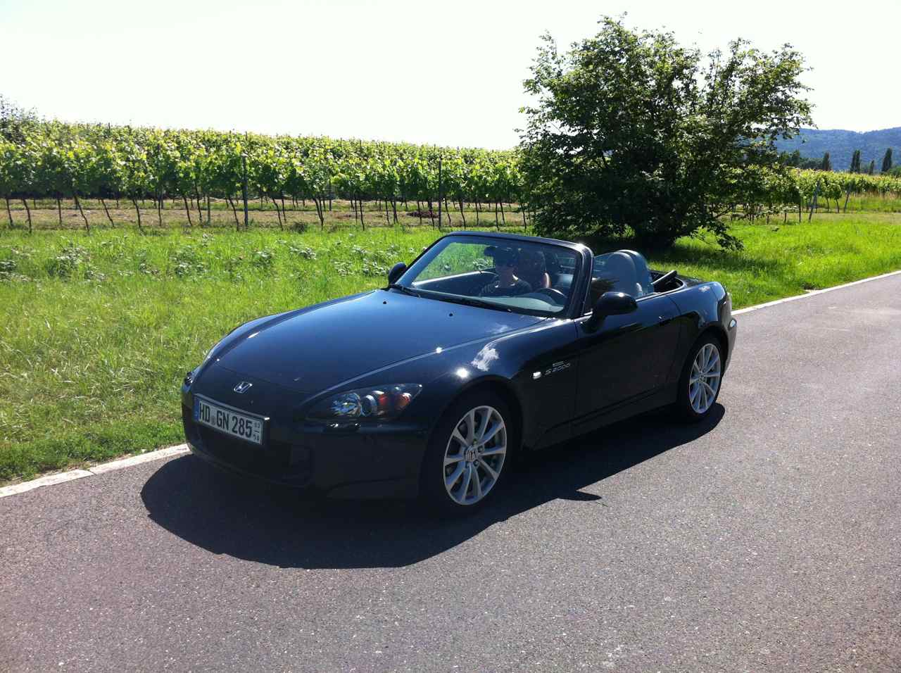 Die Handtasche gehört der Dame, die mir auch zum Kauf geraten hat. Mit Ablagen ist die Kiste ja nicht gerade gesegnet, oder? War ein herrlicher Sommertag in der Südpfalz.