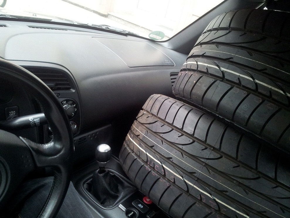 Vorher schmeiße ich die Reifen in mein Altagsauto... Nur war das an diesem Tag zufällig auch mit 4 Reifen beladen ![]()