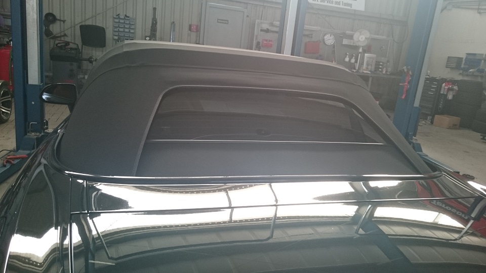 Wurde ende Mai mit neuem OEM ( kein billiger USA Schrott ) Stoff neu bezogen und auch gleich die Heckscheibe getönt (mit ABE)