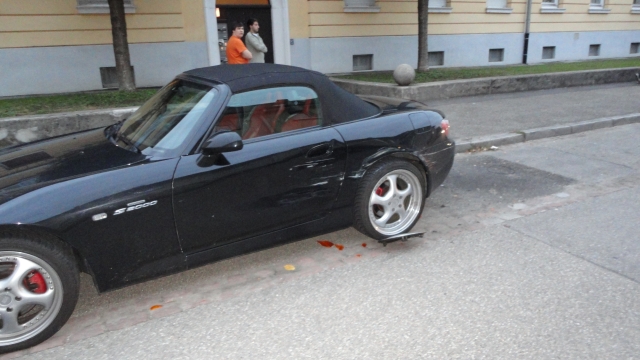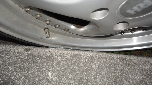 Ich habe den Honda S2000 letztes Jahr mit diesem Felgensatz gekauft und einen Monat später fuhr vor meiner Haustüre in einer 30Km/h Zone jemand beim ausparken in meinen Wagen. Aus der gegenüberliegenden Parkreihe fuhr sie vorwärts los und hat wohl zu wenig gelenkt.. Jedenfalls sehen Sie hier auf den Fotos die damalige Situation und die Schäden, die sich nur auf die beiden hinteren Felgen auswirken. Die vorderen Felgen sind in einem super Zustand.