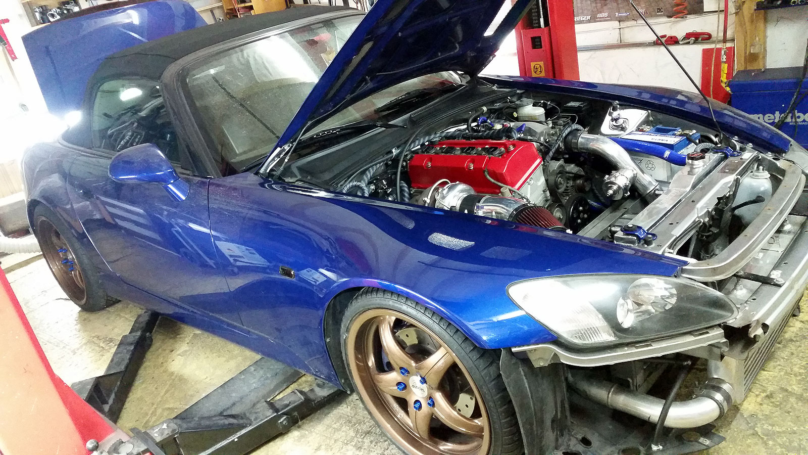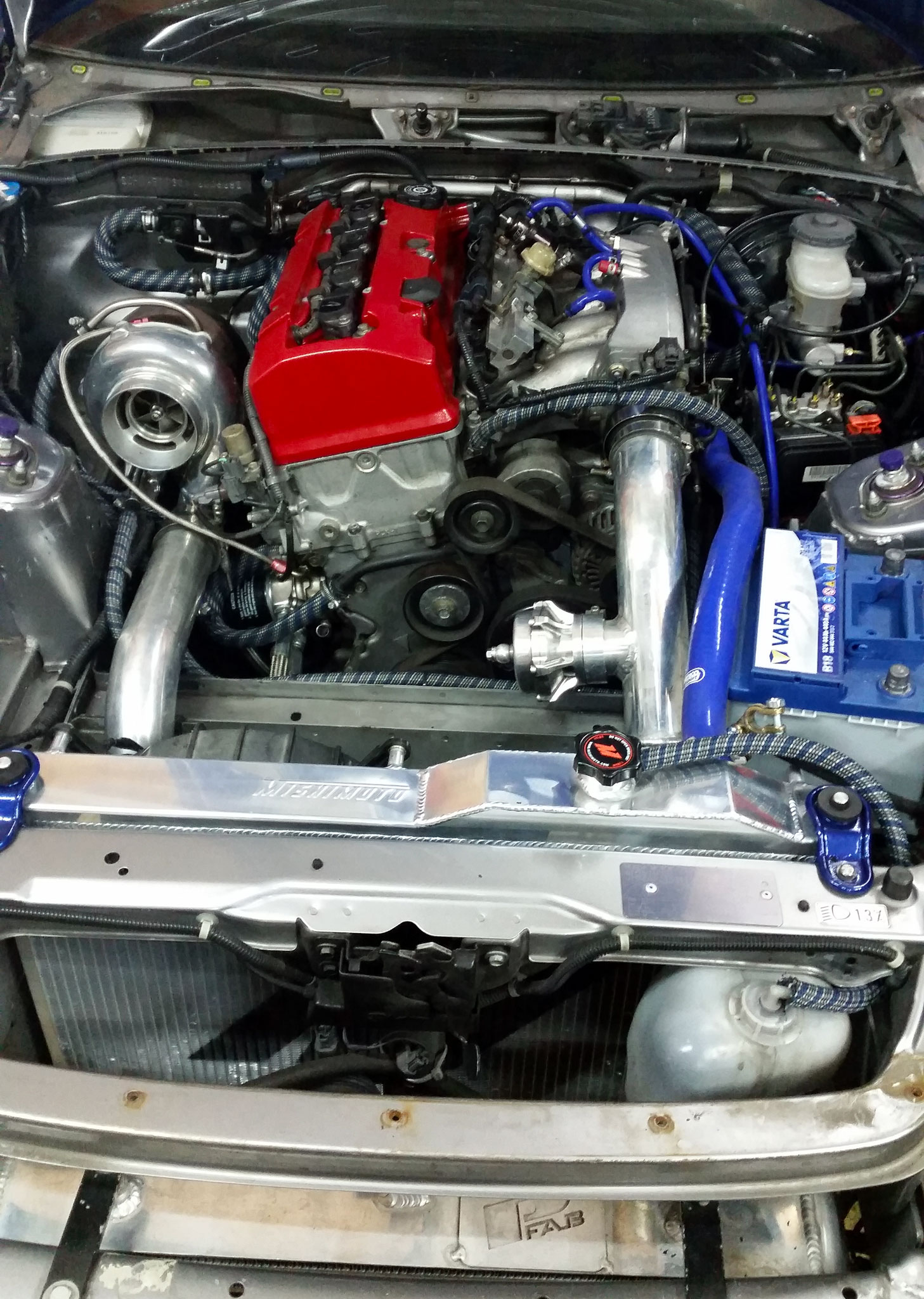 Hier der aktuelle Stand. Hat noch jemand ne Domstrebe vorne oben rumliegen? Weiß aber nicht sicher ob ich die drauf krieg. Für Beleuchtung im Motorraum für die Nacht ist auch bereits wieder gesorgt und hab mich schon ein wenig mit dem AEM Steuergerät angefreundet.