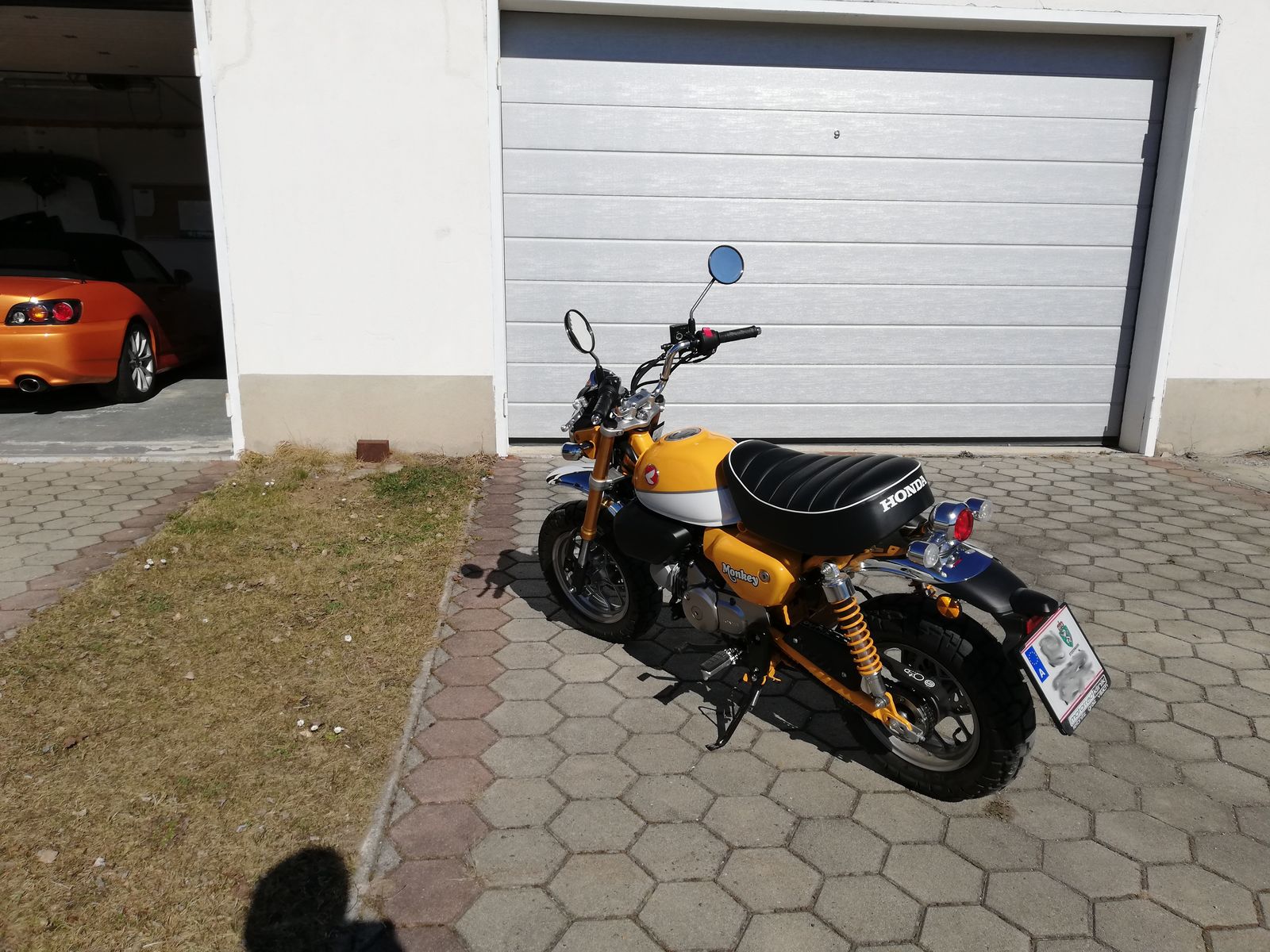 Bin froh, dass ich meine Holde schlussendlich von der Monkey überzeugen konnte, sonst würde jetzt eine gelbe 125er Vespa den Hof „verschönern“ ![]()