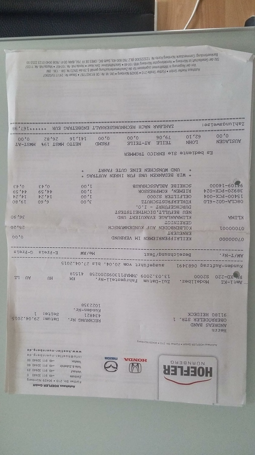 - alle Kundendienste beim Hondahändler & 1x im Jahr unabh. von den gefahren KM Öl+Filterwechsel