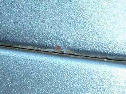 neulich bei einer Wagenwäsche ist einem Freund aufgefallen, dass sich hinten im Spalt zwischen der Stoßstange und dem Blech Rost befindet.
