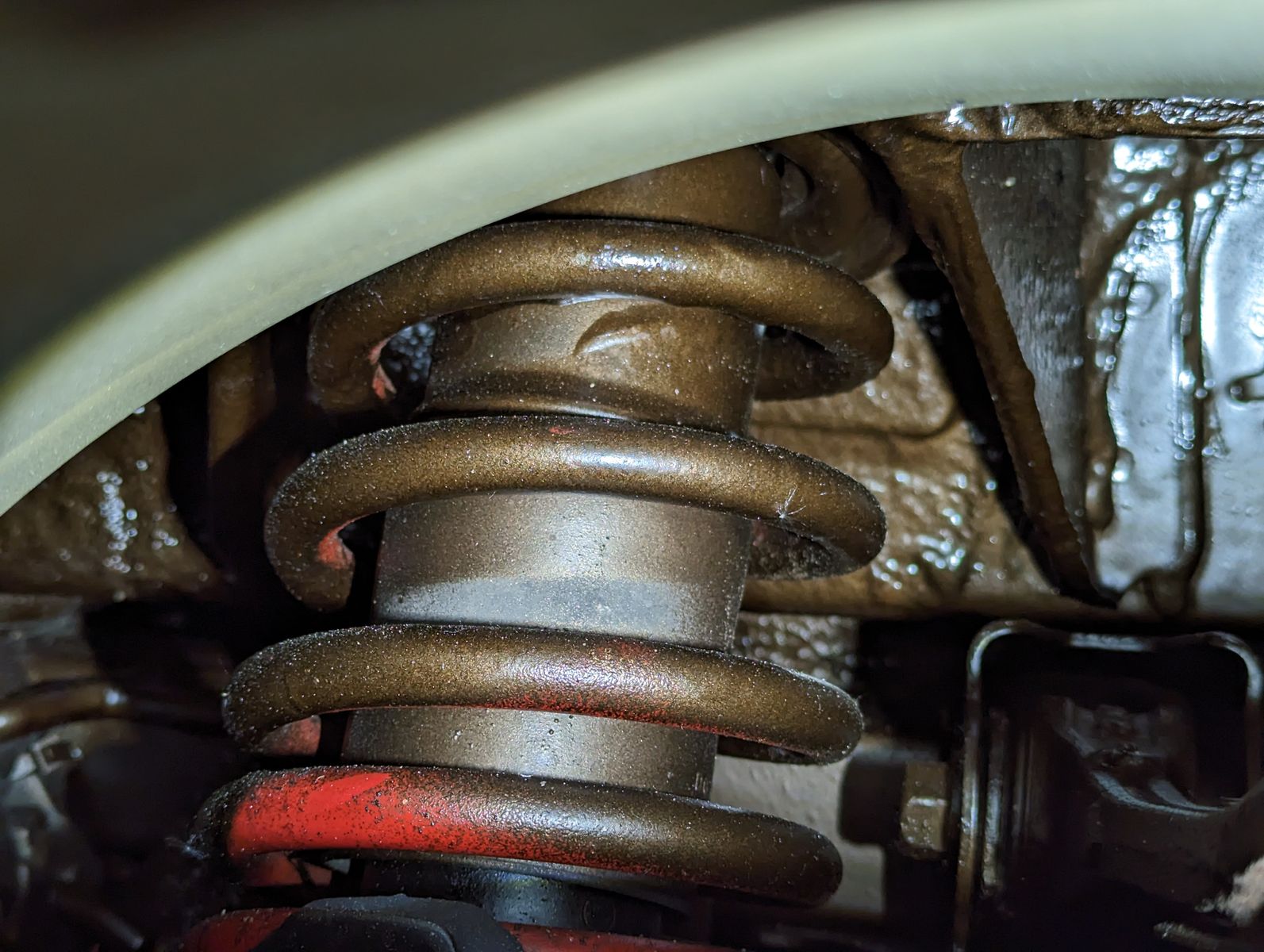 Das Braun der Versiegelung passt eh farblich besser zum Fahrzeug als das eigentlich Rot der Federn