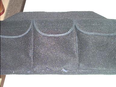 Sie sitzen bombenfest, die Taschen sind etwas grösser als beim Original, werden auch hier mit Klettverschluss verschlossen. Auf dem oberen Bild sieht man unter der mittleren Tasche etwas Kleber, das ist aber nur mein Prototyp, alle anderen werden genäht. Der Filz ist an den Kanten umgeschlagen damit dedr Lack des Kofferraumdeckels nicht verkratzt wird.