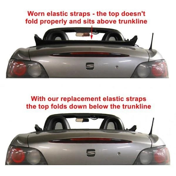 Die Straps setzen den vorderen Teil unter Spannung. Beim öffnen, wird der vordere Teil nach hinten geklappt. Beim Schließen wird der vordere Teil nach unten gespannt. Das Letztere vermindert auch Windgeräusche bei höheren Geschwindigkeiten.