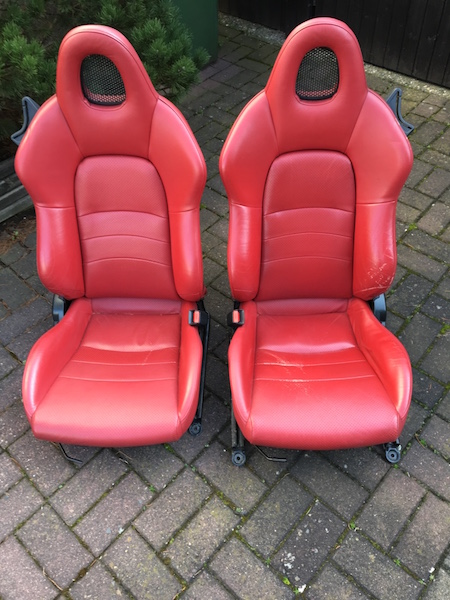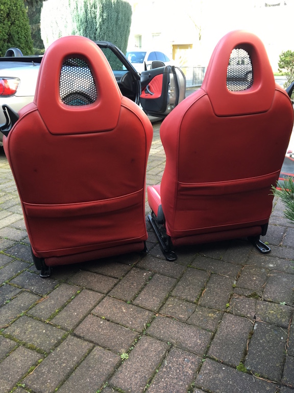 ich biete hier S2000 Sitze in rot an. Die Sitze weisen an den üblichen Stellen Gebrauchsspuren auf. Der Fahrersitz hat auf der Sitzfläche einen kleinen Riss.