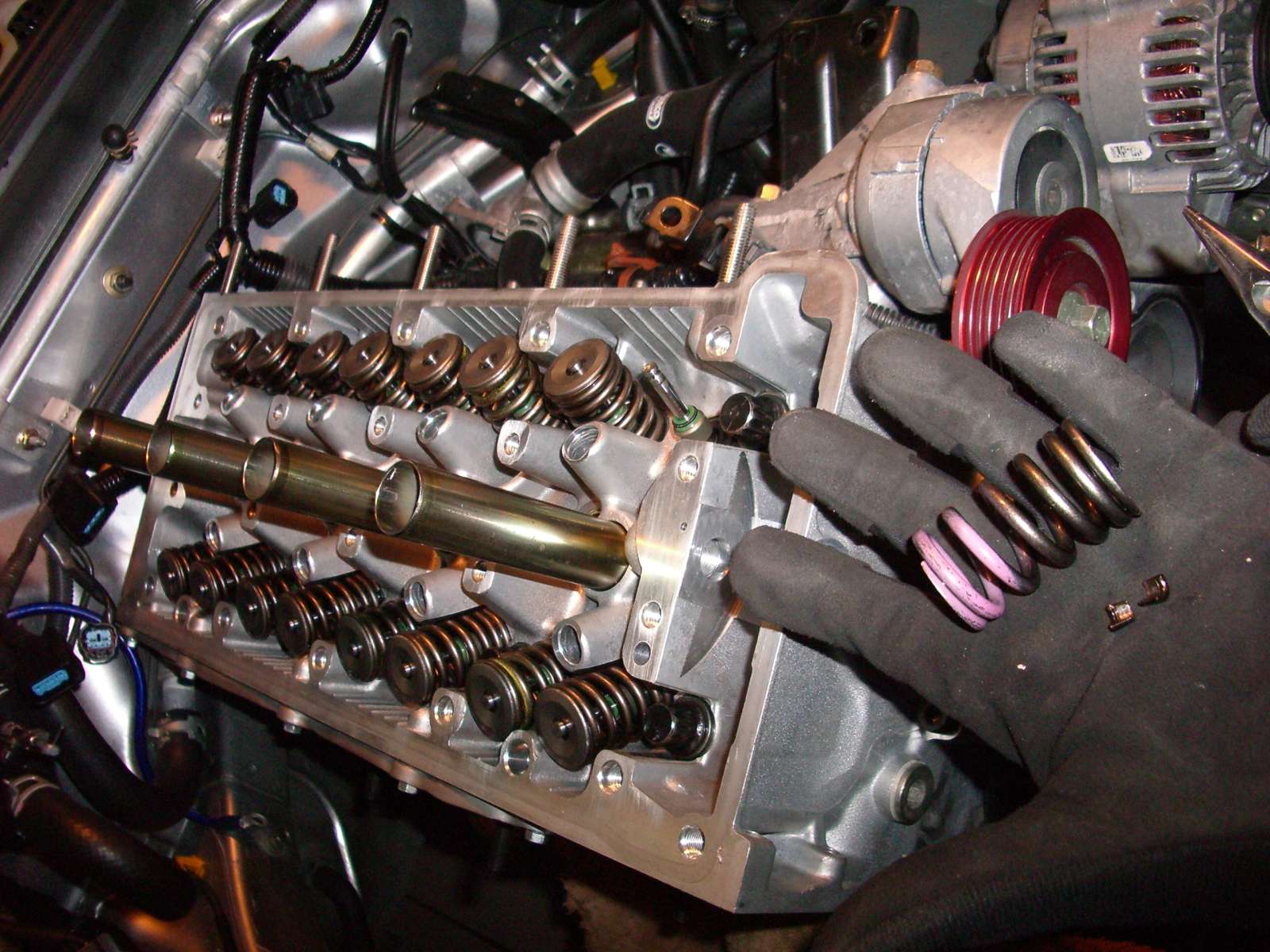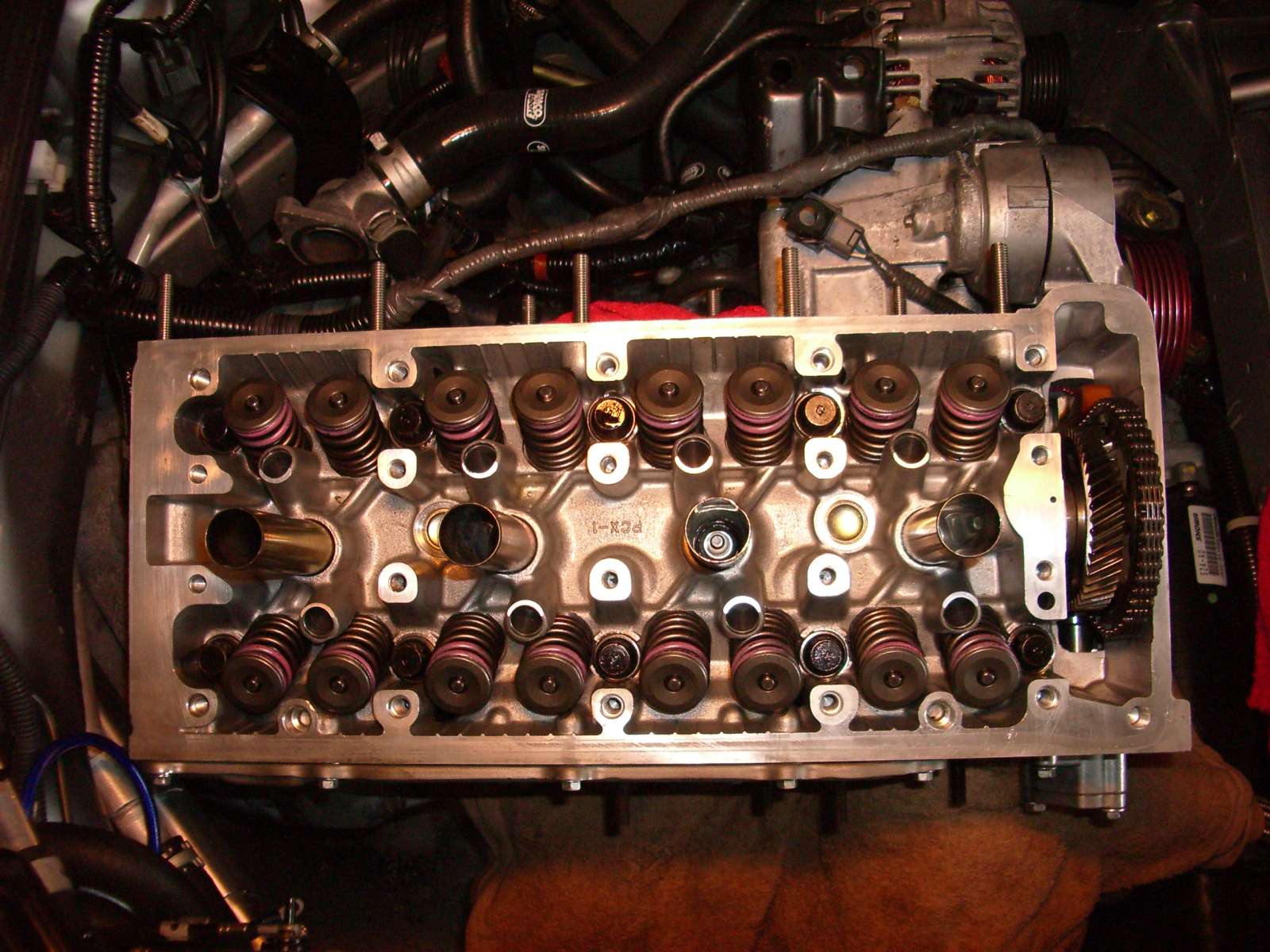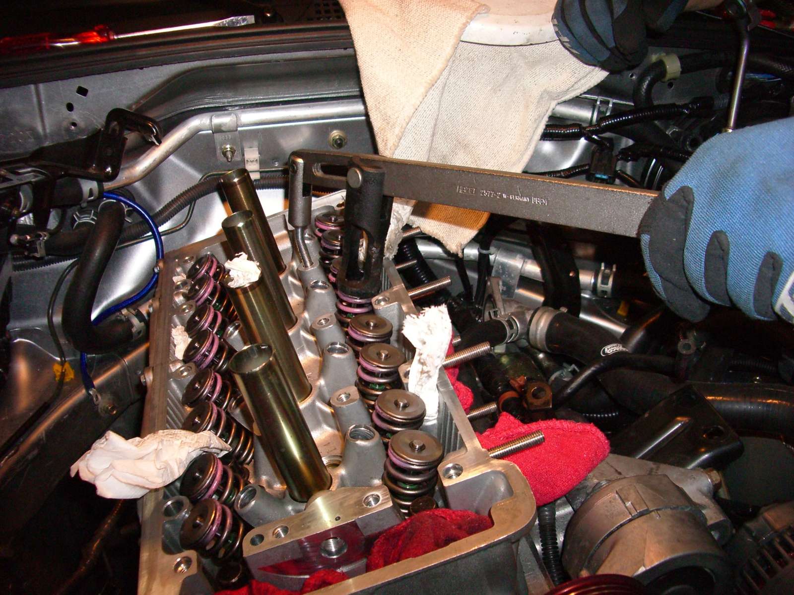 Da ich keine Druckluft habe, musste ich darauf achten, dass jew. der Kolben auf OT steht an dessen Zylinder ich die Federn am Wechseln war!! (damit die Ventile nicht runterfallen