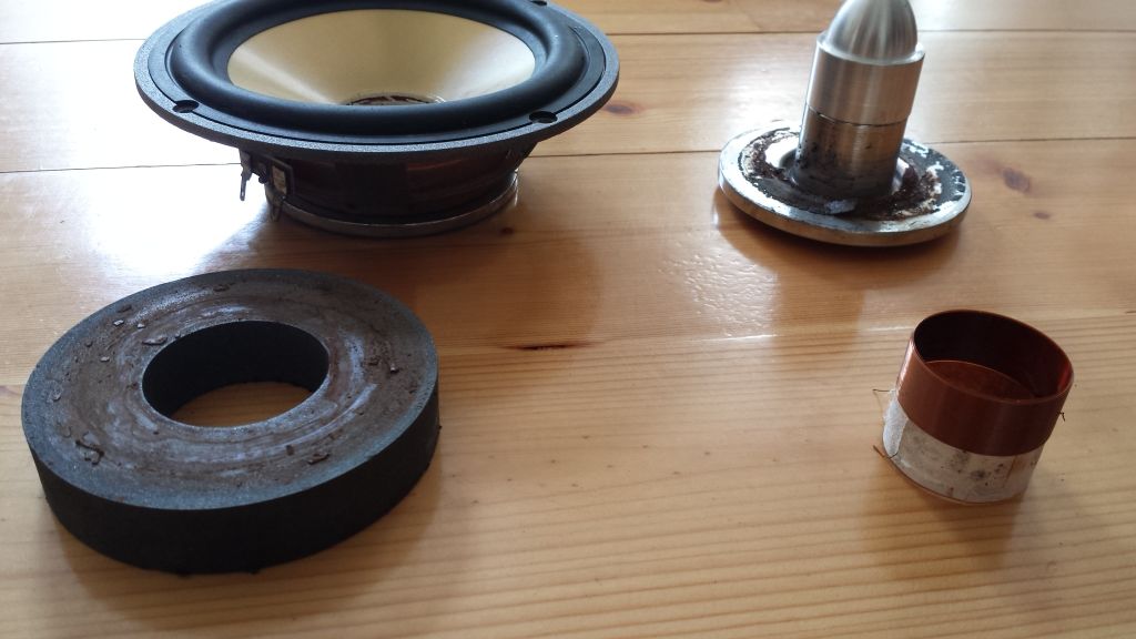 Ich habe den einen Lautsprecher mal auseinander genommen. Einfach mit großen Schraubendreher angesetzt und konnte alles von hinter raus ziehen. Sieht alles gut aus .Ok ein wenig Flugrost, aber für mich auch nicht so tragisch, dass sich überhaupt nichts mehr bewegt.