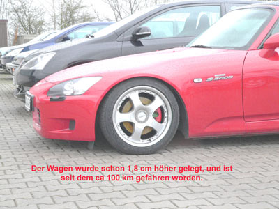 1. Also für 2,0, bis 2,5 cm, kann ich das garantieren, das sich nix geändert hat bei Sturz, Spur etc. konnte es ja selber kaum glauben, ist aber so. Es wurde, weil der Wagen halt schon mal oben war, nur noch versucht, die Stellen hinter dem Komma zu Syncronisieren
