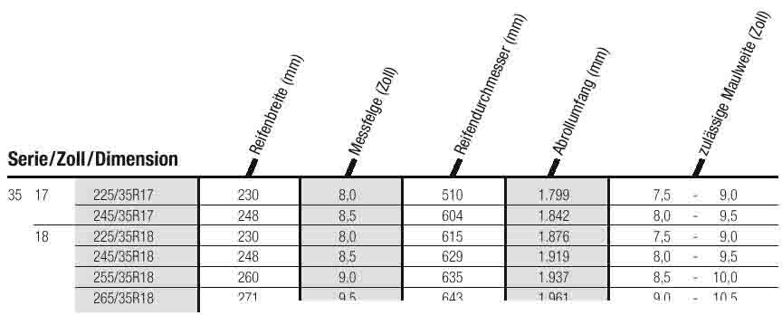 Die Zulässige Maulweite ist zum Beispiel bei einem Yokohama AVS Sport 245/35 18 8-9.5Zoll