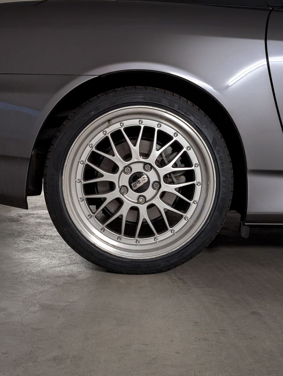 Der Wagen steht im Prinzip da wie vorab besprochen. Die Felgen haben Gebrauchsspuren und die Reifen sind steinalt, alles keine Themen für mich. 3 Nabendeckel fehlen, da muss ich mich um neue kümmern. Leider gar nicht so einfach für die alten BBS Räder etwas passendes zu finden. Der Innendurchmesser bei den neuen Nabendeckeln ist größer.